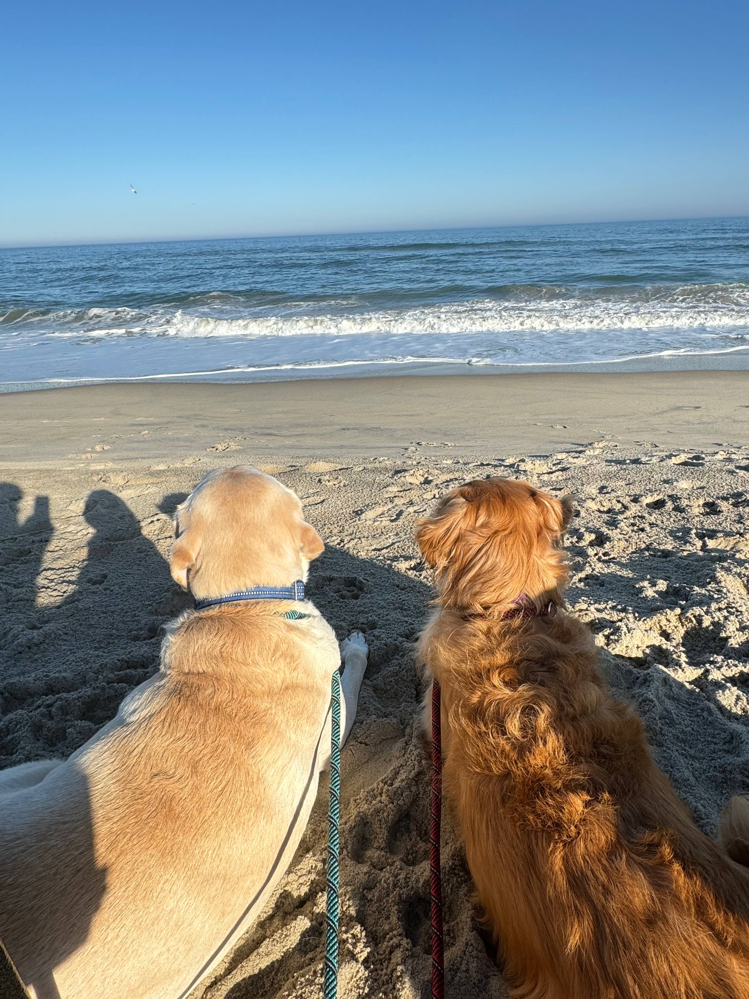 The dogs LOVE the beach every time we go. This was that same trip to the Outer Banks. I'll grab a chair, a mug of coffee, a blanket and them, and we will sit there for hours. 🧡 |